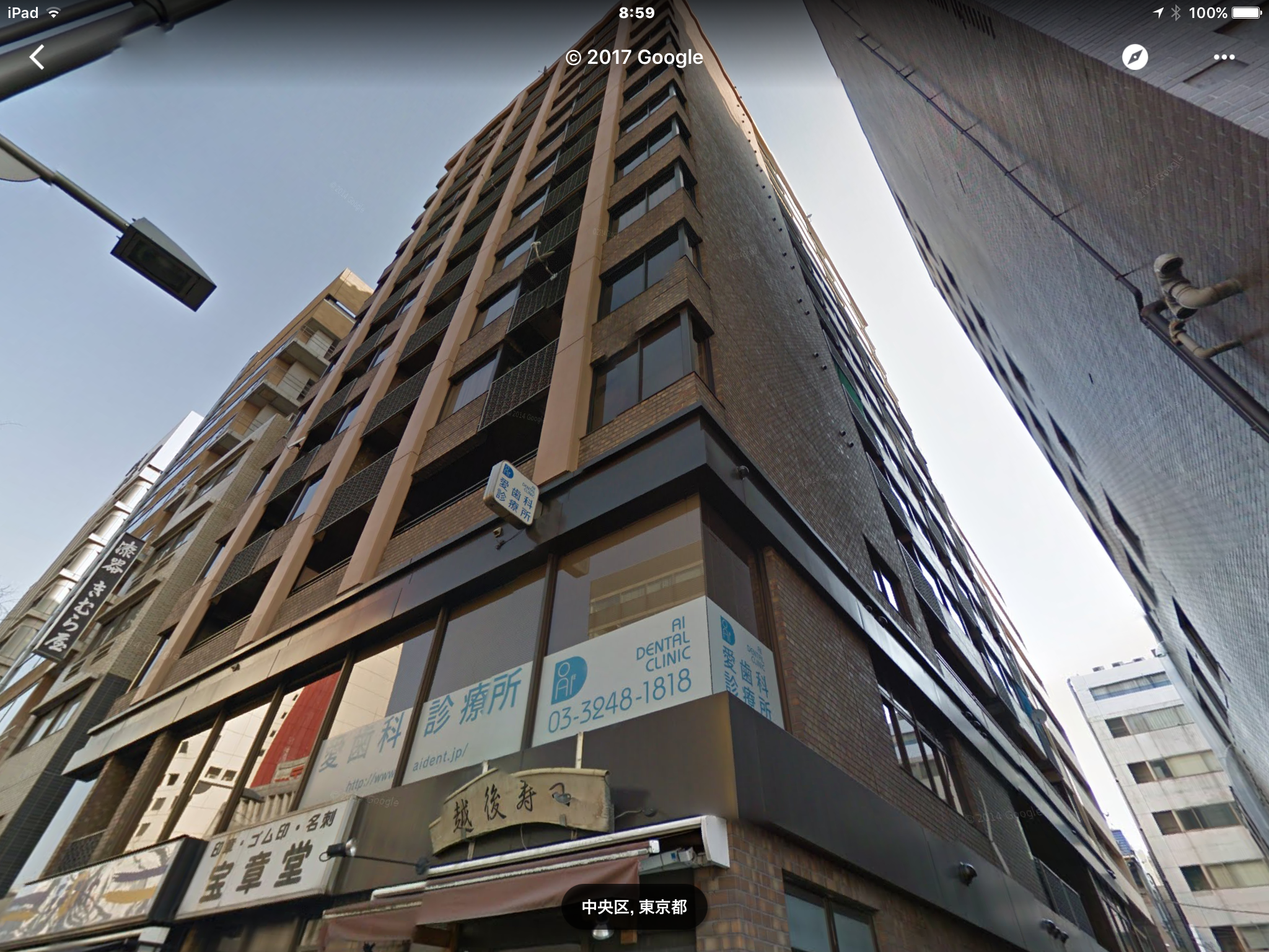 高速道路銀座出口を下車し、晴海通り交差点を左折(1分)そのまま直進し、右側にに見える京橋郵便のある交差点のはす向かい。レンガ色のビルが見えます。
